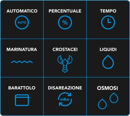 Programma studiato e dedicato a chi deve mettere sottovuoto prodotti in sottovuoto. Con la creazione del vuoto con sistema sensoriale, in automatico la macchina rileva il vuoto nella vasca senza fare nessun settaggio, ottimo perchi pratica la cucina sottovuoto.